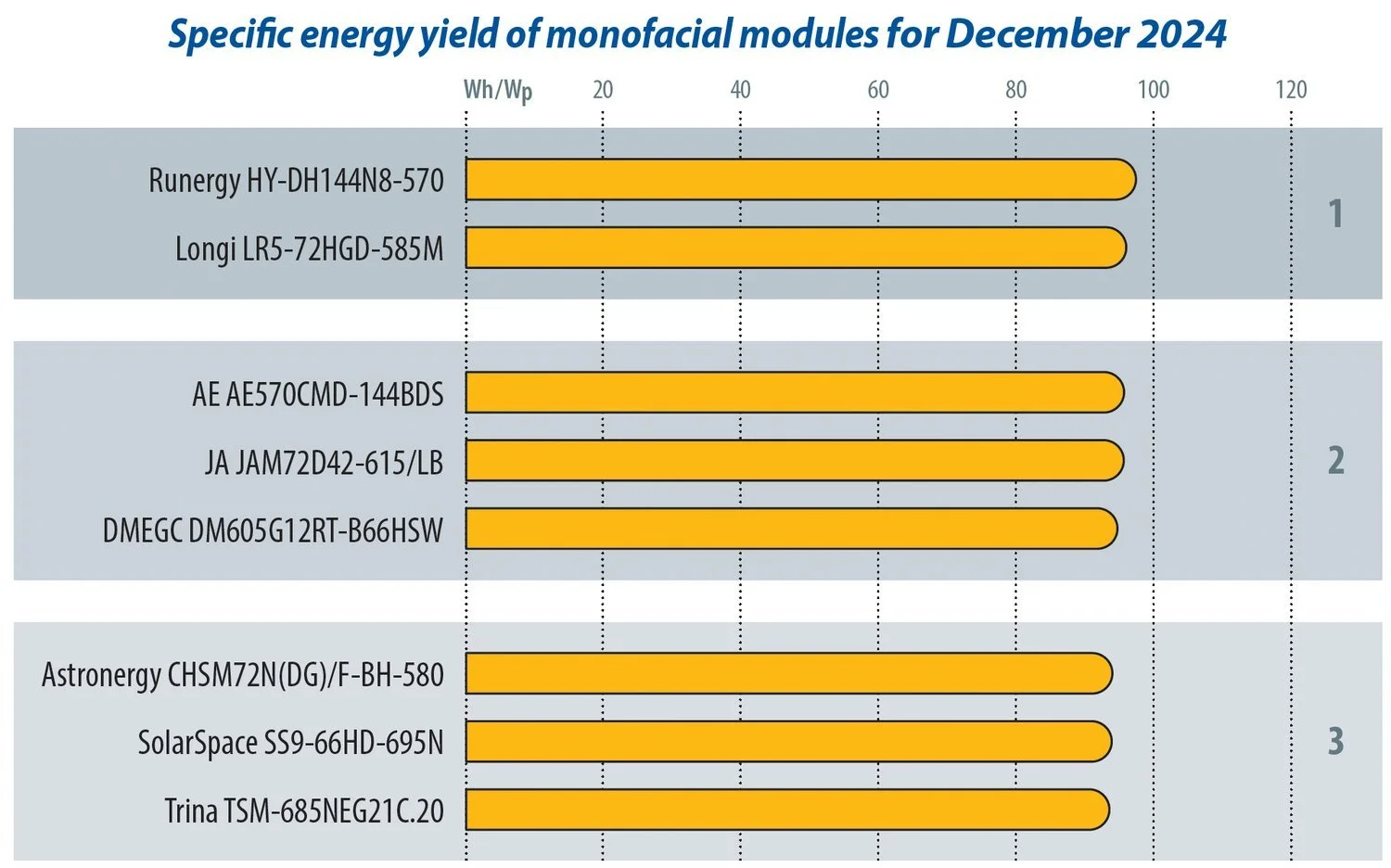Table 1: Specific energy yield ranking December 2024 to January 2025