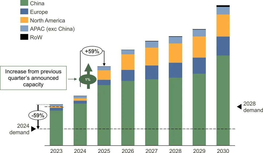 Though China leads, ex-China capacity continues to expand due to ongoing trade wars