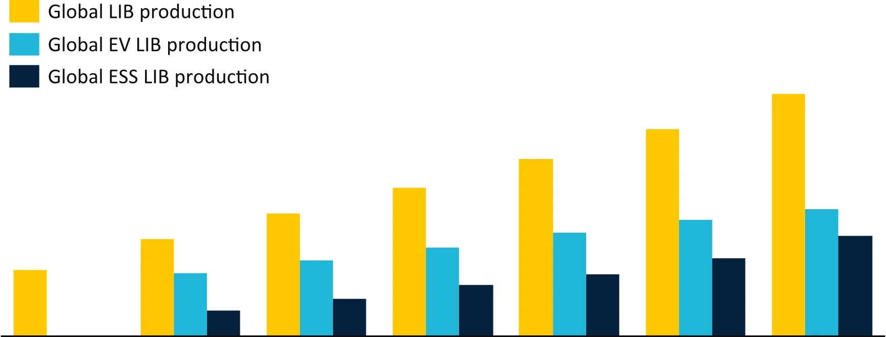 Global lithium-ion battery production forecast by application (GWh)
