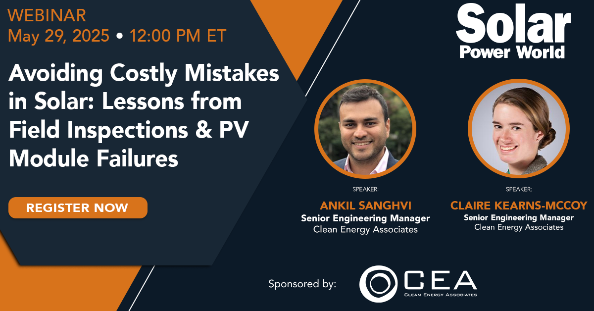 As solar deployments continue to grow, so do the risks of module failures, underperformance, and safety hazards—many of which are preventable with the right knowledge. In this Solar Power World webinar, CEA Senior Engineering Managers Claire Kearns-McCoy and Ankil Sanghvi explain how understanding common pitfalls—from thermal events to electrical failures—can help developers avoid millions in losses.