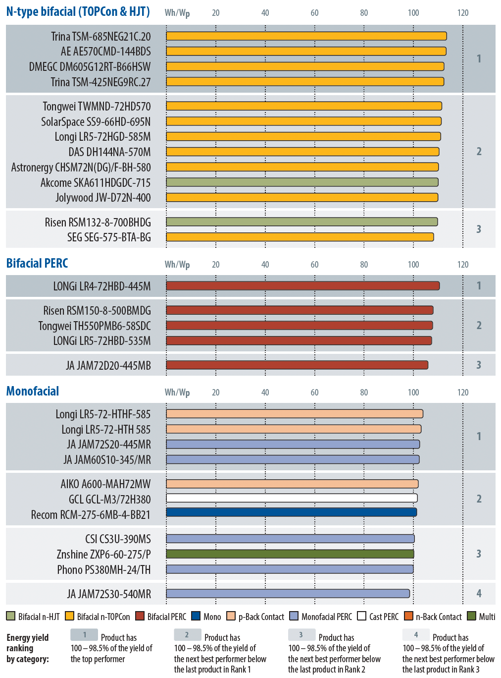 Table 2: Specific energy-yield ranking of n-type bifacial (TOPCon and HJT) modules - July 2024