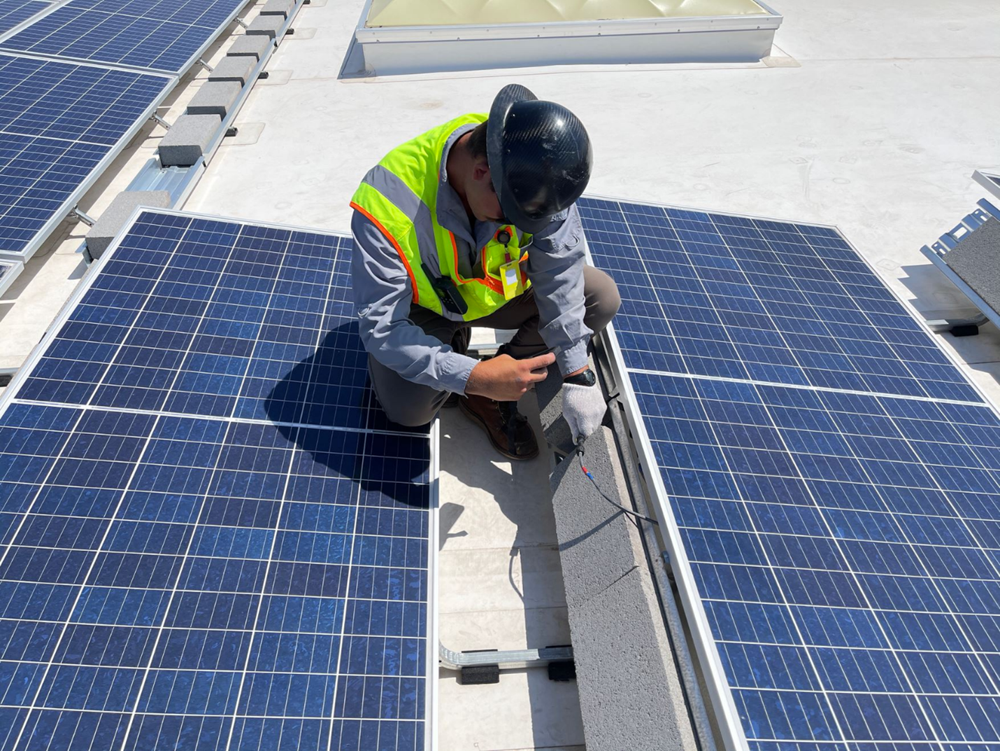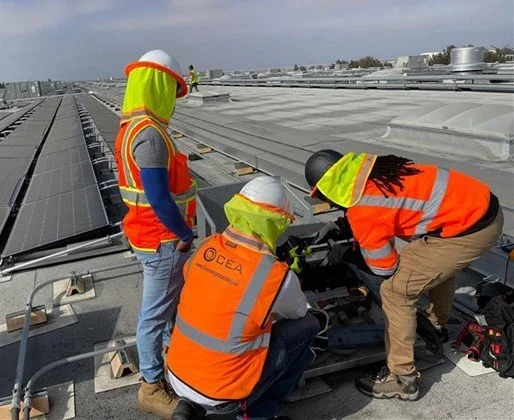 Clean Energy Associates’ engineers performing due diligence inspections on a commercial rooftop installation