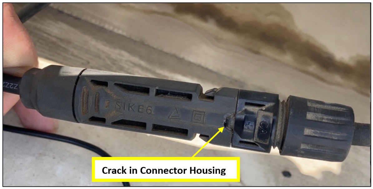 If the field-made connections use different hardware than the module-to-module connectors on the string, or if they are not assembled and installed per the manufacturer’s specifications, there is a significant risk of a hotspot developing, which may lead to a fire. Mismatched or improperly made connectors are a common cause of rooftop solar fires and in some cases account for 100% of an installation’s connectors.