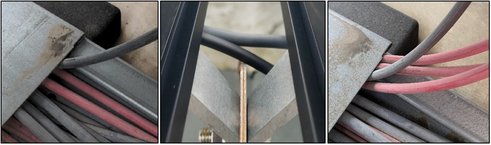 Figure 1: Wires on sharp edges will degrade faster due to the cables expansion and contraction associated with thermal expansion/contraction and rooftop vibrations. This poses the risk of a ground fault and potential fire if not remediated.